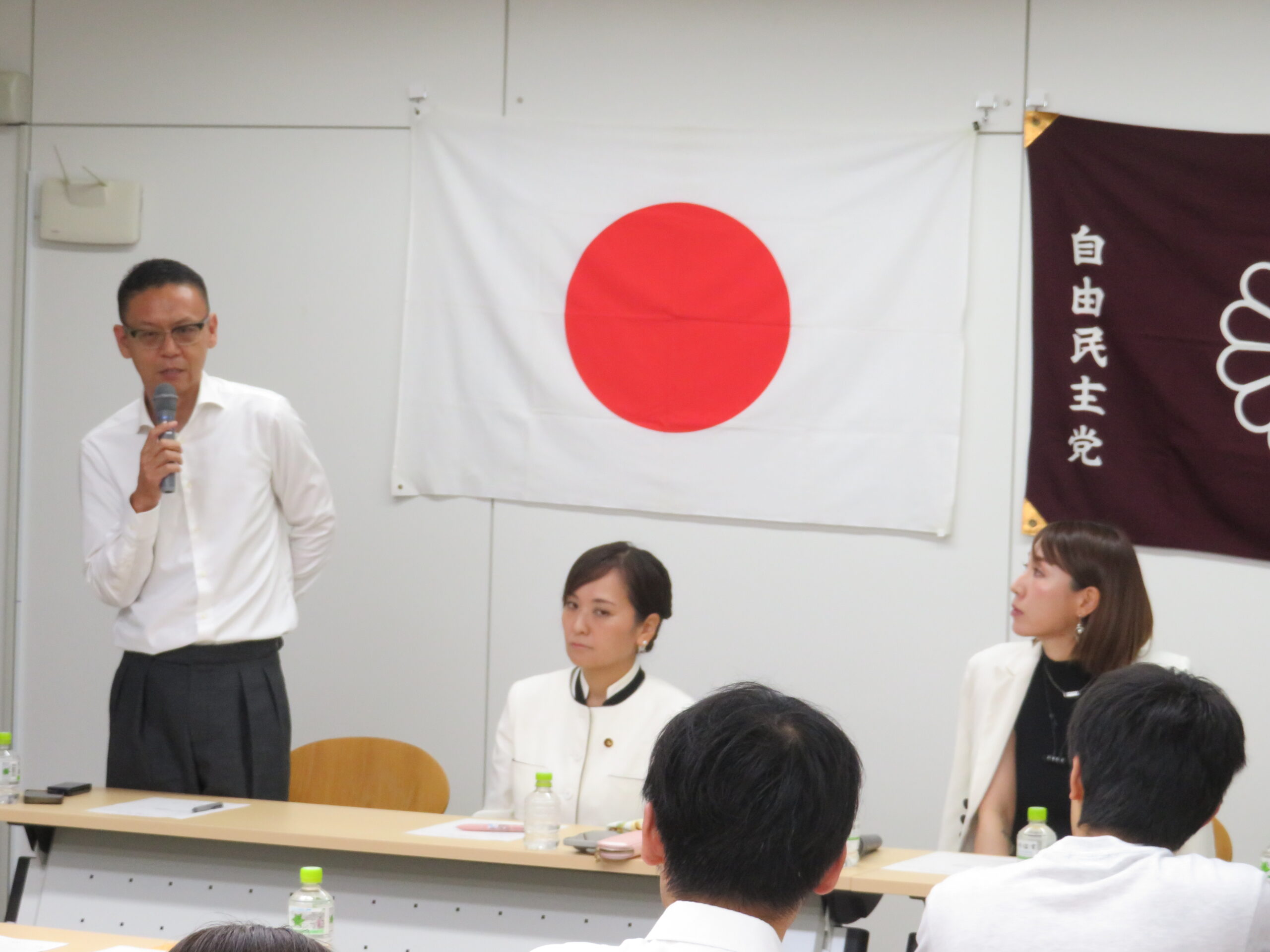 講義の講師として、原田亮(箕面市長)と水原慶明(府連青年局長・守口市議会議員)の2名が登壇し、「逆境を突破するリーダーシップー市長選勝利の秘訣と未来戦略‐」というテーマでトークセッション形式で講義が行われました。原田市長が若くして市長選に挑戦をしようと考えたきっかけや選挙に勝ち抜くために欠かせないことなど現職の市長から話を聞くことができる貴重な時間となりました。