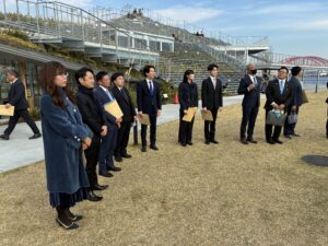 まず、神戸市ウォーターフロント再開発事業による阪神大震災から復興した港湾部を視察しました。