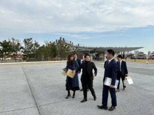まず、神戸市ウォーターフロント再開発事業による阪神大震災から復興した港湾部を視察しました。