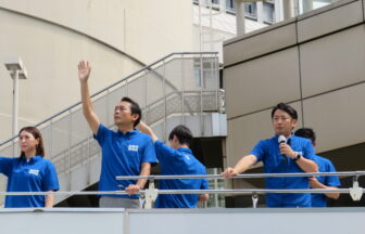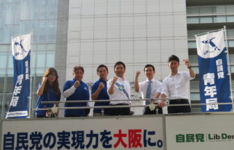 6月26日(木)に大阪府連青年局が大阪駅前で街頭演説を行いました。自由民主党本部青年局より中曽根康隆青年局長・平沼正二…