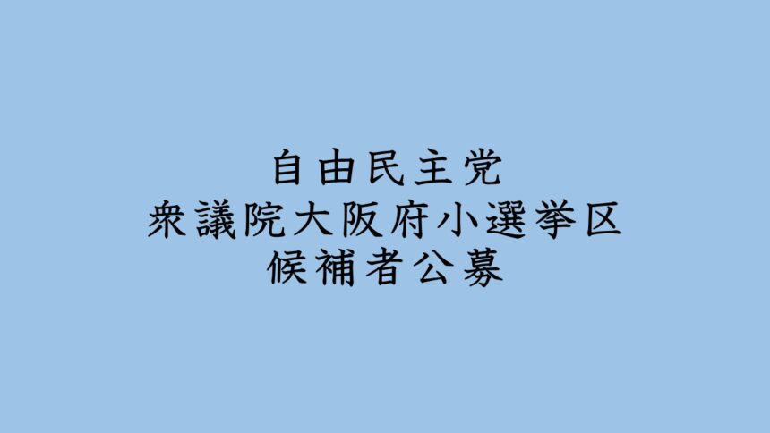 自由民主党衆議院大阪府小選挙区候補者公募のお知らせ